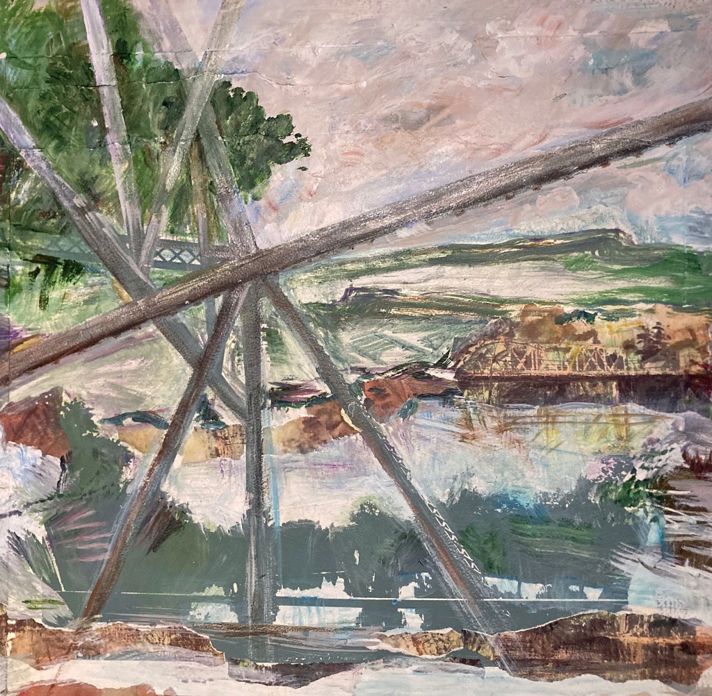 Rosendale Bridge, 35 x 12 inches, Silkscreen/Collage – ($600)