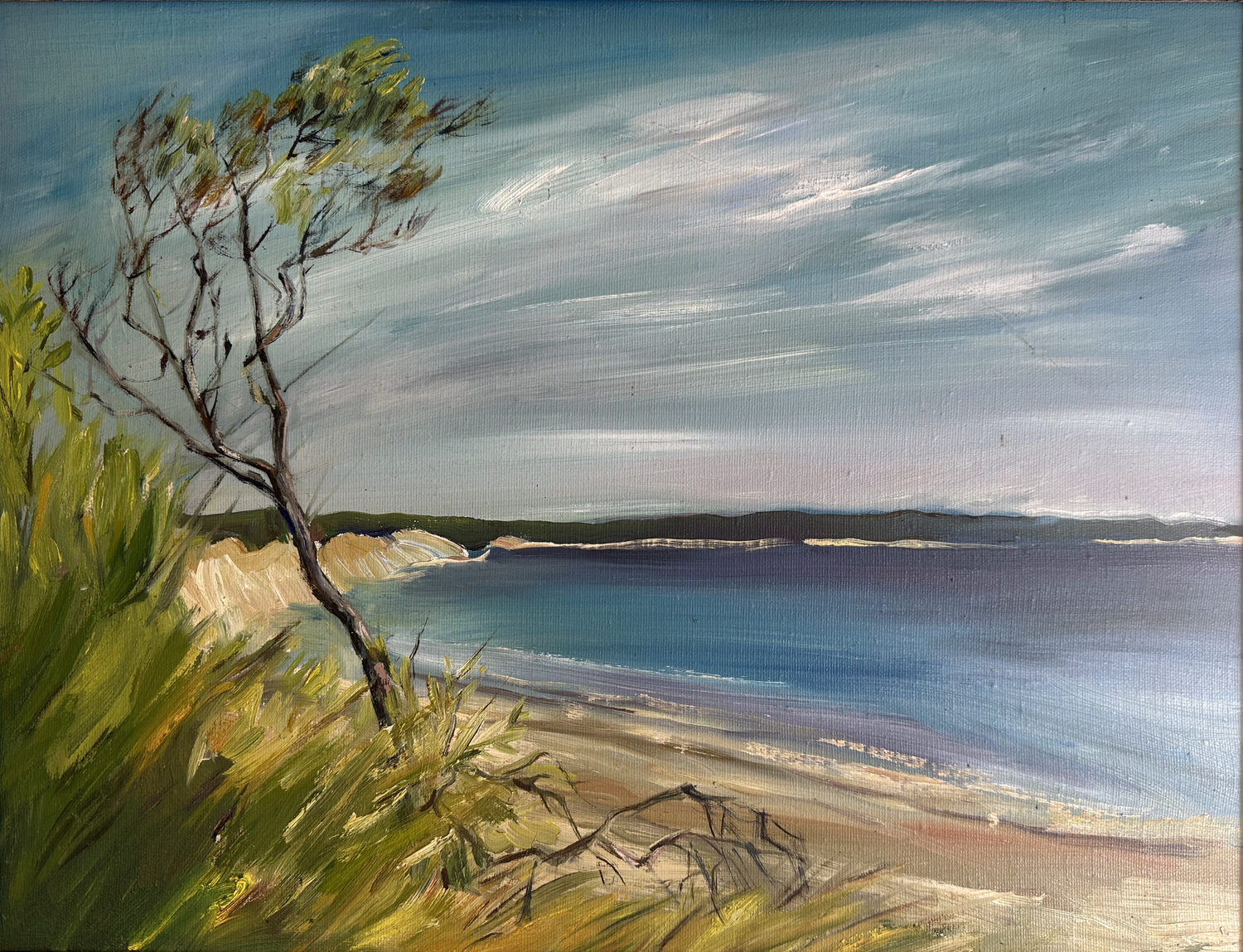 Beach And Stones II, 35 x 12 inches, Mixed Media – ($500)